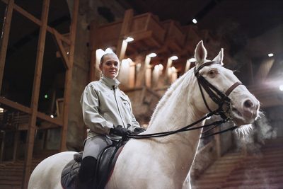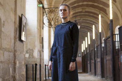 Anna est écuyère à l’Académie équestre Française. Elle nous vient de Sibérie, à 4160 kilomètres de Versailles. Elle aime les chevaux avec lesquels elle se produit en spectacle, mais aussi le travail du cuir. En fait Anna fait deux journées en une. Le cheval et le spectacle d’un côté, puis la réparation du matériel en cuir qui lui rappelle tant de souvenirs…